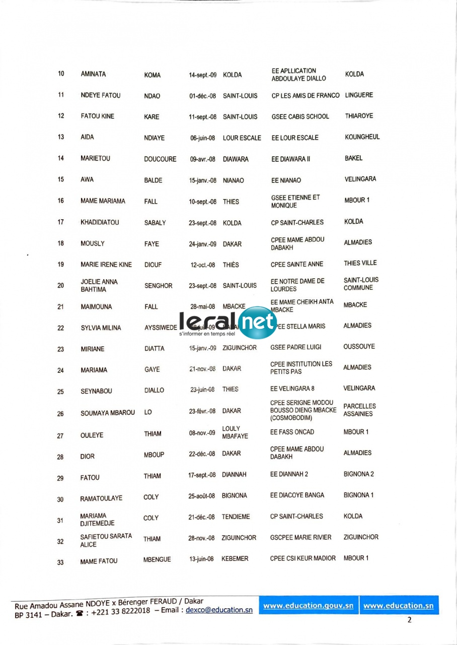 Le cas le plus flagrant qui les indigne est celui de l’élève Fatoumata Ciss. Sur le procès-verbal de délibération en date du 20 novembre 2020, du ministère de l’éducation nationale, il est clairement mentionné : Les candidates, dont les noms figurent sur la liste paraphée en annexe, sont déclarées admises, par ordre de mérite, au concours d'entrée en classe de sixième de l'Enseignement moyen de la Maison d'Education Mariama BA de Gorée, pour l'année scolaire 2020 - 2021.