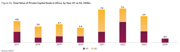 Les acteurs locaux et internationaux de l’industrie du private equity ont injecté 900 millions de dollars dans des entreprises africaines au premier semestre 2024, selon un rapport publié le 20 août par l'Association africaine de capital-investissement et du capital-risque (AVCA). Ce montant est en baisse de 66% par rapport à celui enregistré durant les six premiers mois de 2023. L’Afrique de l’Ouest fait toutefois exception avec une augmentation de 3% sur la même période.