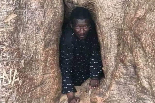 Qu’est ce que Mary Teuw Niaw peut bien faire dans cet arbre mystérieux? Mystère et boule de gomme. Renseignement pris cet arbre est le baobab de Fadial, et on dit qu’il est très vieux.