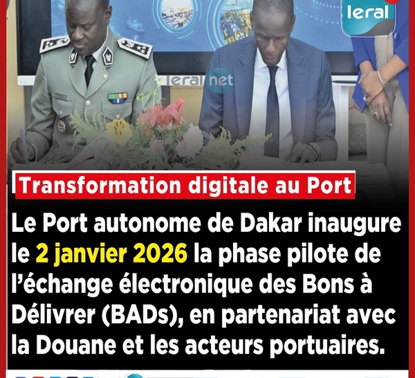 Le Port autonome de Dakar inaugure le 2 janvier 2026, la phase pilote de l’échange électronique des Bons à Délivrer (BADs), en partenariat avec la Douane et les acteurs portuaires. Fin des procédures manuelles Plus de rapidité Plus de transparence Plus de sécurité Un pas majeur vers un port...